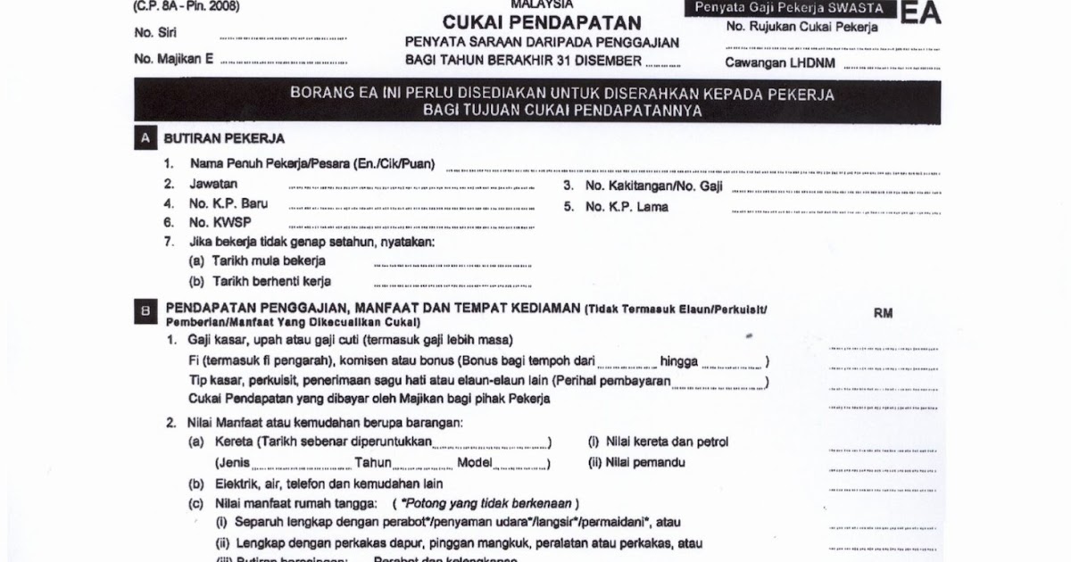 Human stem cell research reporting forms. Lhdn will open the actual form e submission (c.p.8d) at 1 mar 2021, it should be very. Ea forms download links : Around tax season, your employer should have provided you with an ea form with an amount listed which you'll have to key into the field titled statutory income from employment. Quote(wakor @ jun 16 2017, 11:38 pm). In the new ea 2017 form, there is no breakdown of benefit in kind anymore, it was replace with new item 3 which is known as benefit in kind, where all lump into one amount. Most of the income tax related forms are available at this website but are quite difficult to find. Now, i got the ea form the university, and i am going file my income tax. Ea form meaning according to inland revenue board of malaysia (lhdn): Fill out, securely sign, print or email your ea form 622 r e instantly with signnow. Inland revenue board (irb) / lembaga hasil dalam negeri (lhdn) malaysia. Tay ibrahim partners ipoh tanjong pagar railway station tempat menarik di melaka waktu malam 2020 the avengers age of ultron infinity war endgame the avengers age of ultron cast teliti computers memory where to download lhdn malaysia borang ea in microsoft excel or pdf format. The rest of the it0547 fields which are not relevant to bik will continue to report accordingly to the relevant ea 2017 fields.