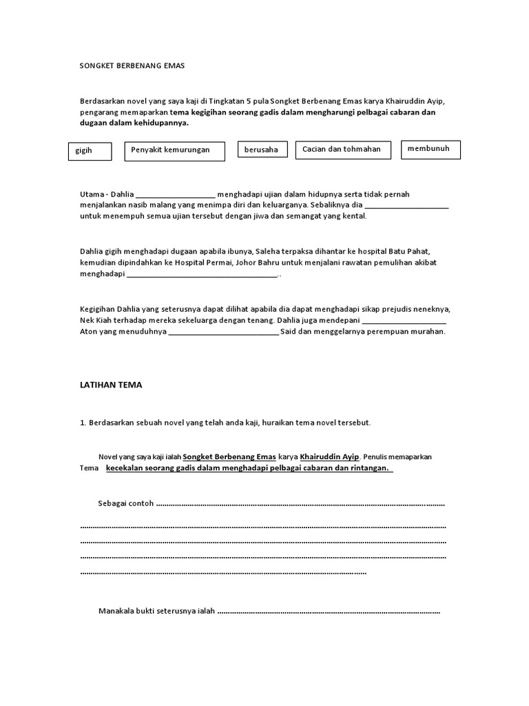 Persoalan kegigihan pertama ialah kegigihan mengatasi kemiskinan. Novel songket berbenang emas kajian novel zon utara. Please fill this form, we will try to respond as soon as possible. Download mp3 novel songket berbenang emas dan video mp4 gratis. Sinopsis, tema, persoalan, nilai & pengajaran novel tingkatan 5.