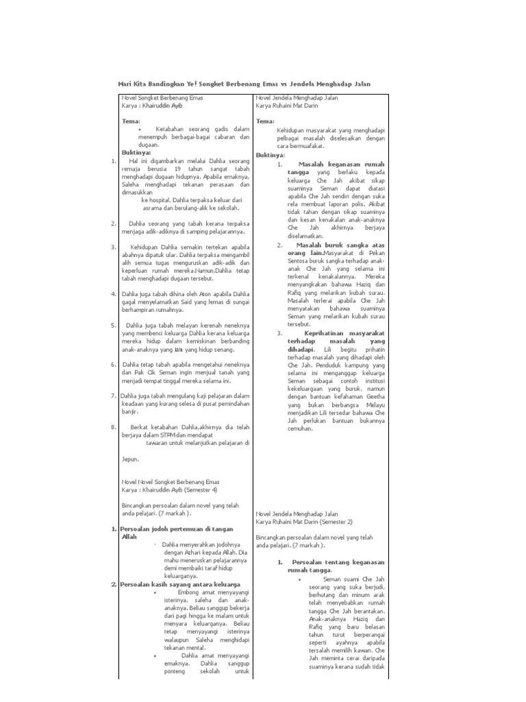 Https Xdocs Tips Doc Nota Padat Jmj Dan Sbe Jn67zrlxm1or from Novel ni agak menarik sebab adanya sedikit elemen cinta. Sinopsis, tema, persoalan, nilai & pengajaran novel tingkatan 5. Download mp3 novel songket berbenang emas dan video mp4 gratis. Nota bergambar kajian unsur sastera dalam novel termasuk sinopsis, tema, persoalan, watak dan perwatakan, latar (masa, tempat, masyarakat), nilai dan. Novel ini mengisahkan kehidupan dahlia, seorang murid yang cerdik dan disenangi oleh teman temannya. Read 6 reviews from the world's largest community for readers. Menurut orang palembang,perkataan songket berasal daripada perkataan songko yang bermaksud penggunaanbenang emas untuk menghias songkok. Please fill this form, we will try to respond as soon as possible.